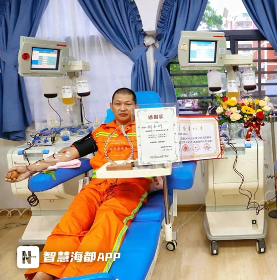 机采血小板捐献过程耗时较长,对身体状态要求极高,但谢永明从未因程序繁琐或身体不适而退缩。十六年间,他坚持规律作息、健康饮食,只为了以最好的身体状态完成每一次捐献,为患者提供最有效的血液帮助。