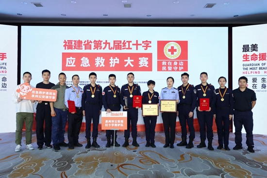 经过三天紧张激烈角逐,泉州市红十字会选派的泉州市公安局红十字救护队最终以全省第二名的优异成绩荣获团体二等奖,其中黄博文荣获个人综合三等奖,郑焕然荣获救护演讲二等奖,胡再望荣获心肺复苏、创伤包扎三等奖。