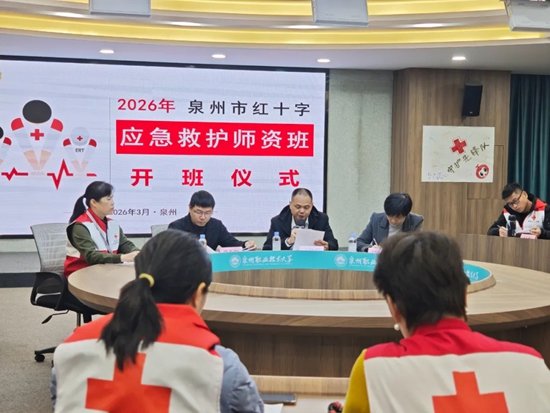 开班仪式于培训首日上午举行,泉州市红十字会党组成员、专职副会长章伟强作动员讲话,强调了培训的重要意义,勉励全体学员珍惜集中研修机会,沉心钻研、俯身实践,系统学习救护知识,精准掌握操作技能,着力打造专业过硬、技艺精湛、教法娴熟的应急救护师资骨干力量,为普及急救知识、守护群众生命安全筑牢能力根基。泉州职业技术大学党委副书记、副校长、校红十字会会长蔡金佩参加开班式。
