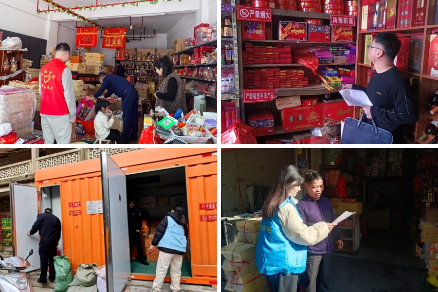 期间,各检查组还将检查与宣传相结合,向前来购买烟花爆竹的群众发放《安全燃放烟花爆竹宣传单》,讲解了烟花爆竹燃放规定及注意事项,实地指导群众如何选购合格的烟花爆竹产品、安全燃放烟花爆竹注意事项、烟花爆竹发生火灾如何处置等。同时,组织发动基层消防工作站人员、网格员、志愿者等,通过发放消防安全宣传单、面对面讲解的方式,围绕烟花爆竹储存、销售、燃放等环节开展宣传提示,现场教学灭火器正确使用方法和火场逃生自救技巧,提醒经营户时刻绷紧消防安全弦,及时清理经营区域易燃杂物,规范摆放商品,确保消防通道和安全出口畅通。