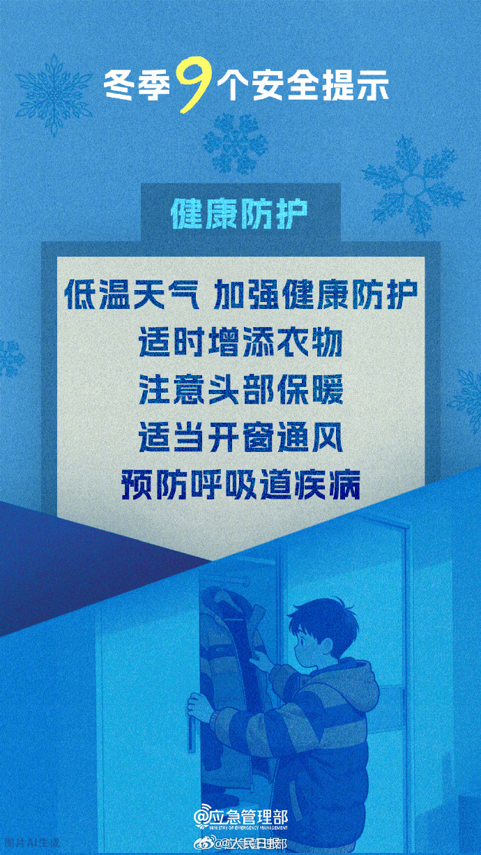 冰雪旅游、居家安全、冬季防火、道路安全、取暖安全……冬季低温,安全更需细心守护!这9件事,请一定提醒家人朋友。