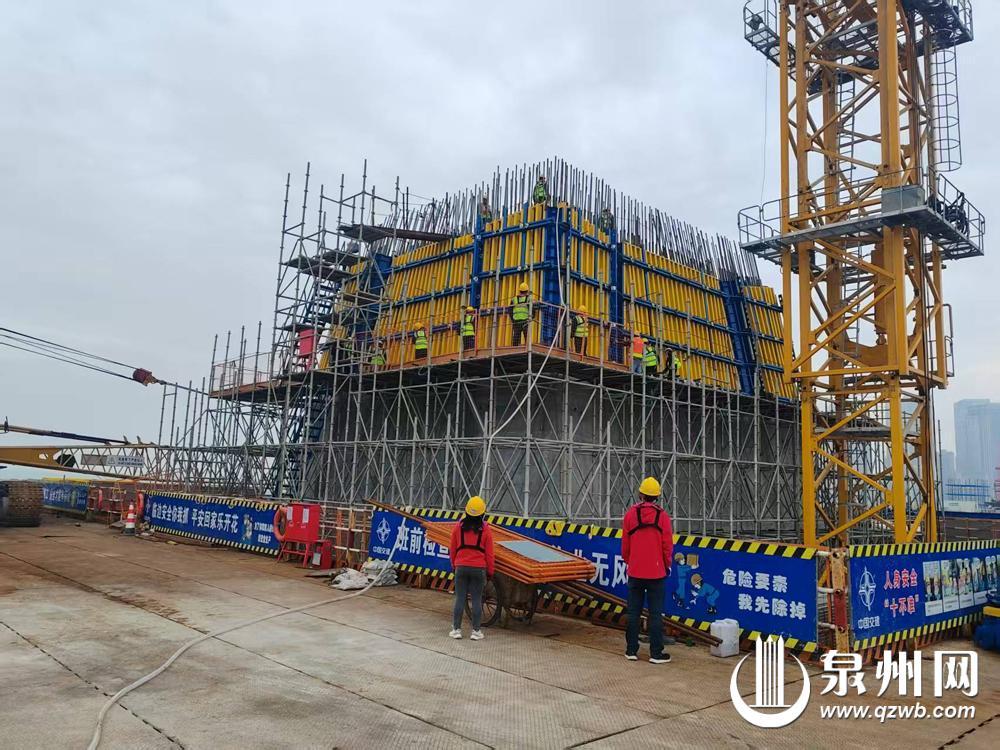 金屿大桥已进入收官冲刺阶段,A1标段桩基、承台、路面基层等15项工程全部完工,墩柱、现浇箱梁完成率超九成,A2标段主体结构施工全面铺开,桩基、墩帽、现浇箱梁等工序有序推进。百崎通道栈桥已全部搭设完成,主体结构与路基工程同步发力,A1标段桩基施工完成近九成,承台、墩柱、主塔等施工按序时推进;A2标段围护桩、主栈桥已完工,水上桩基钢管下放接近尾声,桩基施工超九成,路基、管网、挡墙等附属工程同步开展,项目构造物总体建设已过半,建设步伐全面加快。