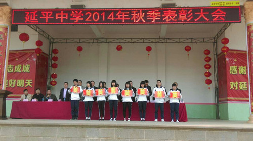 “又是一年春草绿,依然十里杏花红”,新的学年,开启新的希望,新的空白,承载新的梦想。3月17日下午,我校召开2014年秋季表彰大会。教育局副局长梁赐生、石井党委委员许小军、校董会董事长郑达沙、永远名誉董事长许哲智、理事长郑长征、监事长洪润洲、董事局主席李世杰先生、副董事长郑伯新、校级领导张温情、黄长顺、许鸿儒等出席表彰大会并在主席台就座,会议由副校长陈良培主持。