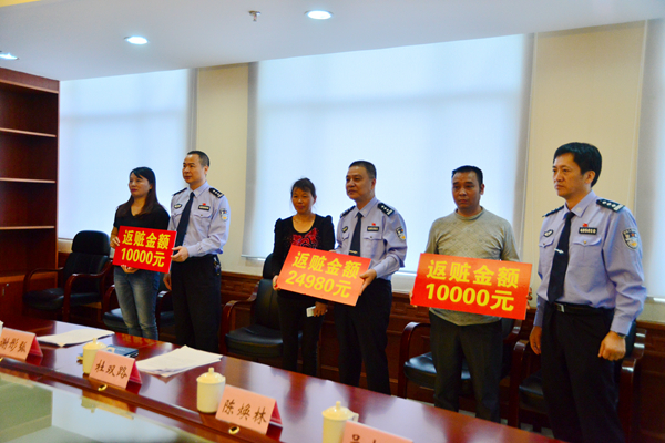 发布会上,该局杜双路局长向与会媒体记者介绍了“猎狐百日会战”以来所取得的阶段性成效;祥华派出所教导员陈烨烽、刑侦大队副大队长张伟宣分别通报了陈某杰特大电信诈骗案、钱某合电信诈骗案的侦破情况。期间,县局还组织为外地受害群众代表发放追缴款。