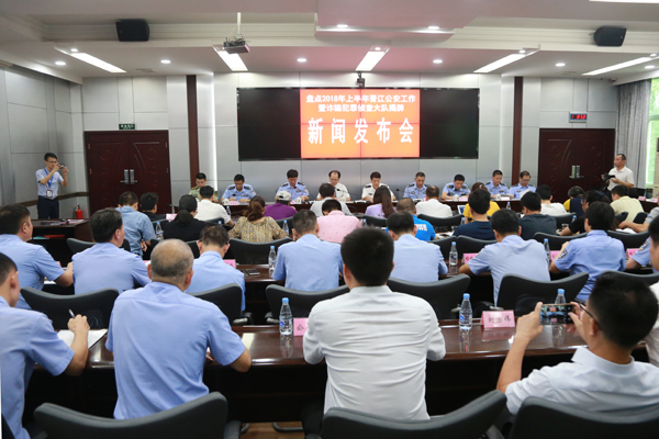 7月12日上午,晋江公安召开盘点2018年上半年工作暨诈骗犯罪侦查大队揭牌新闻发布会。泉州市公安局党委委员、晋江市公安局局长陈文荣,泉州市局刑侦支队支队长林元益,福建天衡联合(泉州)律师事务所主任汪卫东等领导出席。