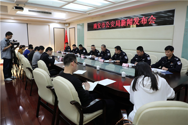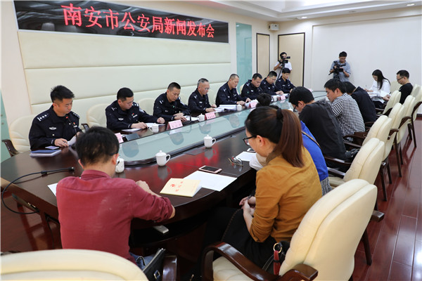 12月3日下午,南安市公安局在指挥中心二楼会议室召开新闻发布会通报“12.2美林玉叶阻碍执法事件”,警务督察大队、指挥中心、网安大队、交警大队、法制大队、美林派出所等单位有关负责同志出席,来自省、市11家媒体进行了报道。发布会由南安市公安局新闻中心主持。