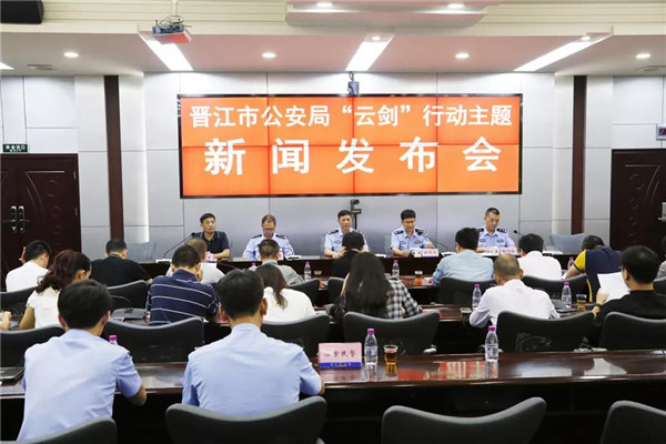 10月17日上午,晋江市公安局召开“云剑”行动主题新闻发布会。晋江市公安局政委苏家明,副局长洪进南,局党委委员、指挥中心主任龚志勇等领导出席。