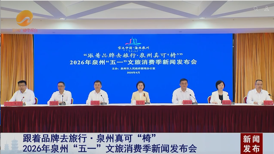 4月15日,“跟着品牌去旅行·泉州真可‘椅’”2026年泉州“五一”文旅消费季新闻发布会召开。泉州市文旅局局长吕秀家;丰泽区人民政府副区长杨柳刚;洛江区人民政府副区长杜仁义;晋江市人民政府副市长陈丽蓉;惠安县人民政府副县长陈荣煌;德化县人民政府副县长林亮国出席发布会。