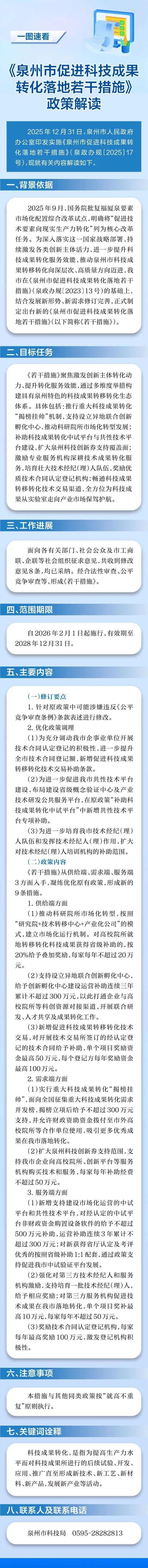 图解:泉州市人民政府办公室关于印发泉州市促进科技成果转化落地若干措施的通知